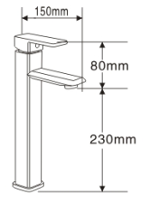 De M-FC1108 heeft een breedte van 150mm en een hoogte van 300mm. Deze mengkraan kunt u bevestigen op uw wasbak tafel en badkamerkast.